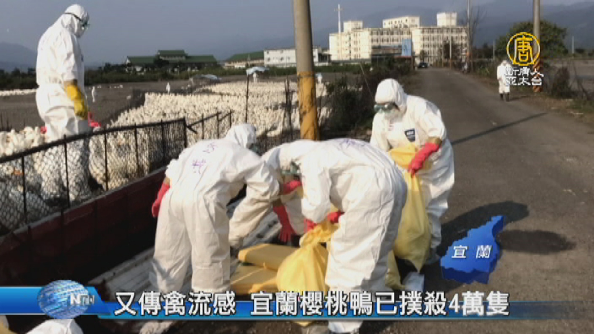 【新唐人亞太台 2017 年 03 月 05 日訊】宜蘭縣櫻桃鴨場,被驗出感染H5N2禽流感,星期天上午防疫單位再進行撲殺。目前,已經有高達4萬隻的櫻桃鴨,遭到撲殺。