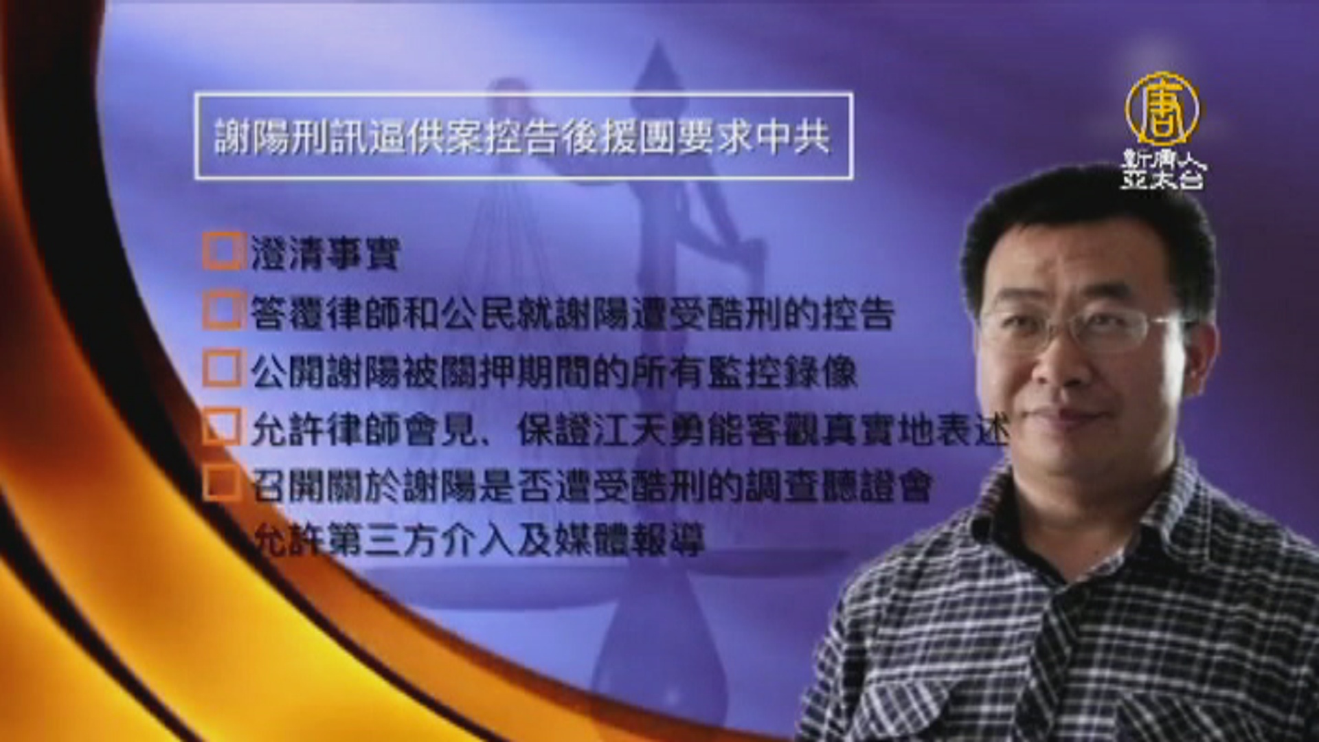 後援團的律師們要求中共當局澄清事實,答覆律師和公民就謝陽遭受酷刑的控告;公開謝陽被關押期間的所有監控錄像;允許律師會見江天勇,保證江天勇能夠客觀真實地表述;同時召開關於謝陽是否遭受酷刑的調查聽證會,允許第三方介入及媒體報導。