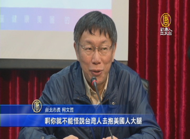 台北市長 柯文哲:「今天中國已經是世界上的大國,在處理台灣問題上面,應當更有自信來處理,不要、應該就是說動不動就要恐嚇,你動不動遼寧艦就來繞一圈,然後飛彈就對準、幾千枚飛彈對準台灣,啊你就不能怪說台灣人去抱美國人大腿。」