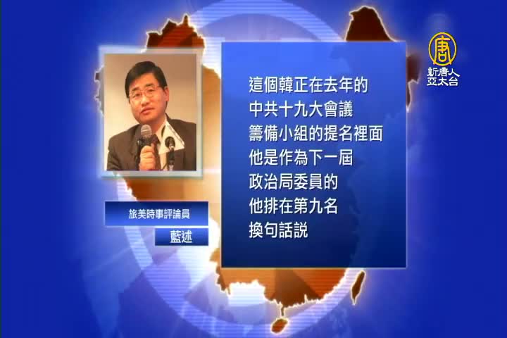 旅美時事評論員藍述:「這個韓正在去年的中共十九大會議籌備小組的提名裏面,他是作為下一屆政治局委員的,他排在第九名。換句話說,韓正是江系大員裏面,最有可能進入十九大政治局常委的人物,即使進不了常委,他也是政治局委員的、江系的一個主要人物。」