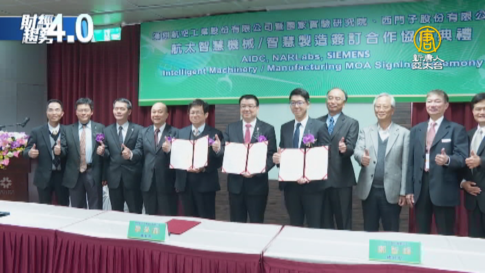 【新唐人亞太台 2017 年 03 月 12 日訊】再來看到,台灣航太積極朝向智慧製造發展,這個星期,漢翔航空和國研院、西門子,舉行「航太智慧機械及智慧製造合作協議」簽署儀式,時間點,就選在台北國際工具機展期間,凸顯台灣工具機產業,對航太科技發展的重要性。