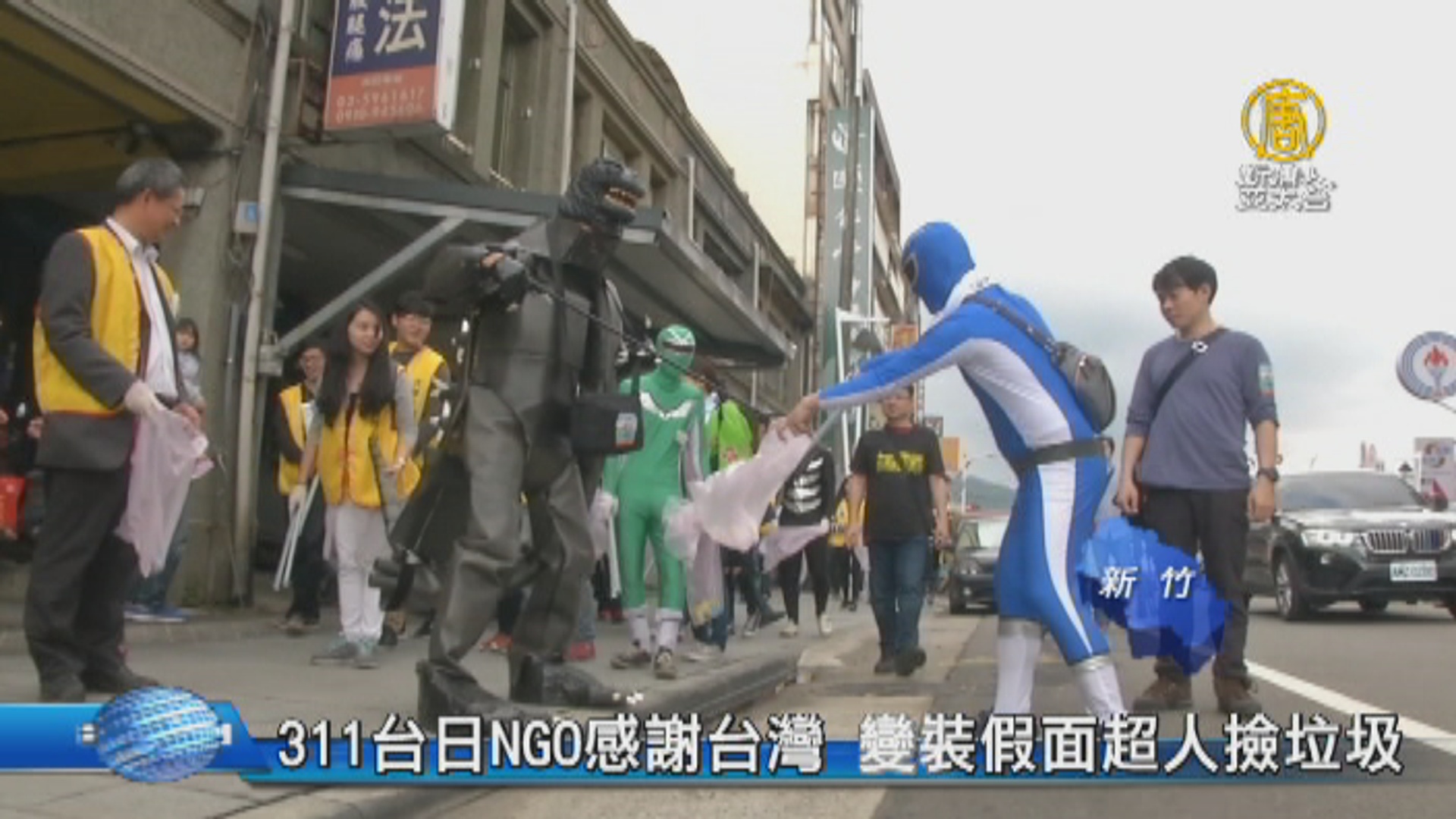 311台日NGO感謝台灣 變裝假面超人撿垃圾