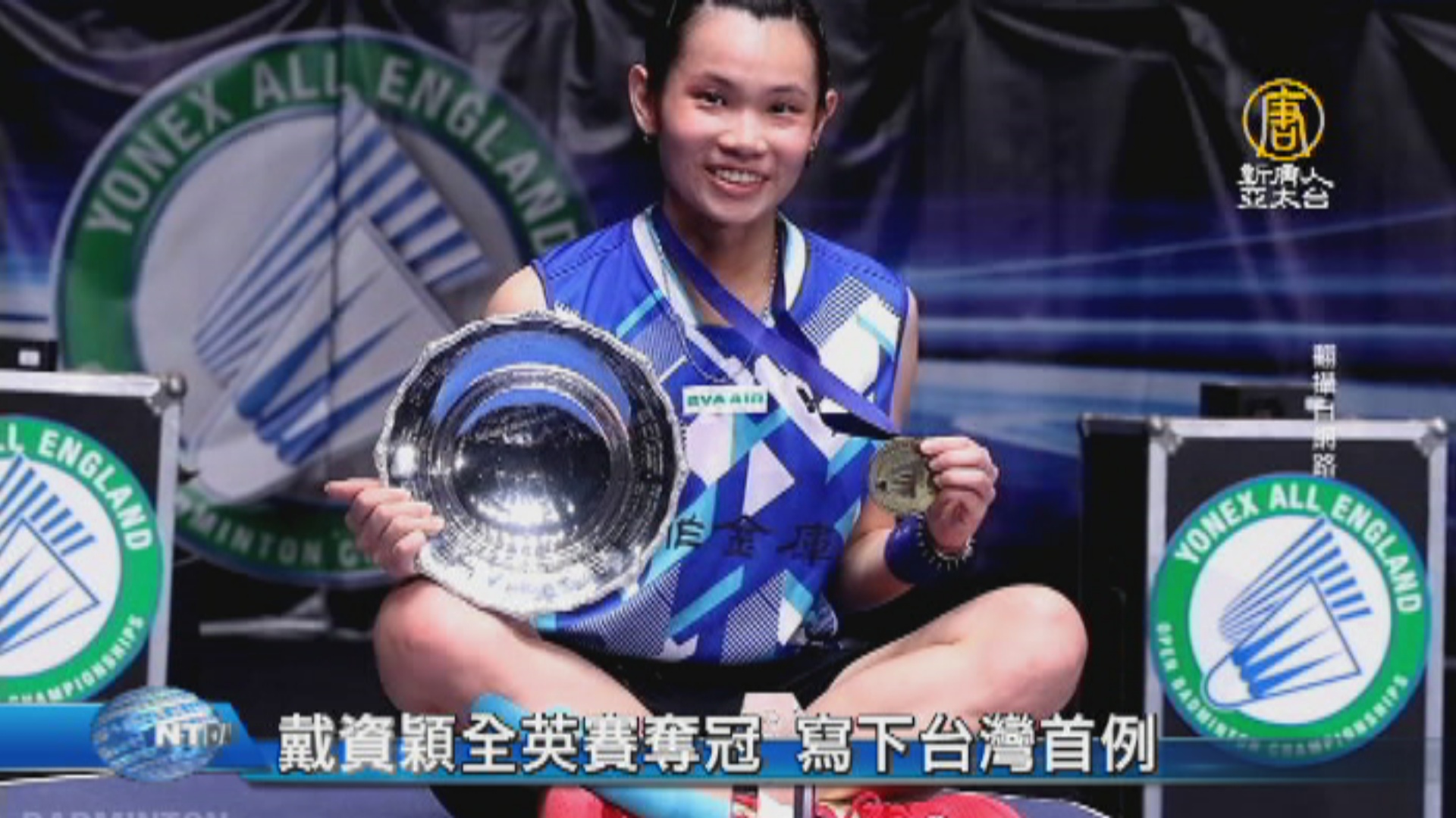 【新唐人亞太台 2017 年 03 月 13 日訊】體壇捷報來看到,台灣「世界球后」戴資穎,今天將紀錄繼續推進,她在全英羽球女單公開賽中,以21:16、22:20 擊敗世界排名第7的泰國好手 依瑟儂,拿下跨季的連3座,頂級超級系列賽 金盃。戴資穎也是台灣第一位在全英羽球賽奪冠的選手。