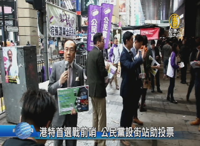 【新唐人亞太台 2017 年 03 月 14 日訊】鏡頭轉到香港,香港公民黨為協助市民參與「民間全民投票」,即日在香港中環 擺攤宣導。他們強調,絕不支持前政務司長 林鄭月娥擔任特首、延續梁振英的路線。呼籲民主派 選委集中票源投票。