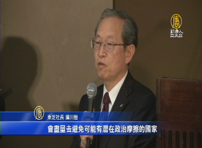 【新唐人亞太台 2017 年 03 月 15 日訊】日本科技大廠東芝,昨天舉行記者會,但卻是二度延遲財報,社長綱川智公開道歉,針對東芝半導體事業,他說,關乎國家安全,會避免有政治問題國家的合作夥伴。今天,東芝股價,重挫12.23 %。
