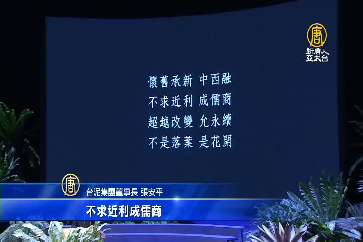 台泥集團董事長 張安平:「所有兄弟姊妹有四句話,來形容成允的一生,也就是今天各位等等會拿到的紀念冊,四篇的章節的名稱,那就是,懷舊承新中西融,不求近利成儒商,超越改變允永續,不是落葉是花開。」