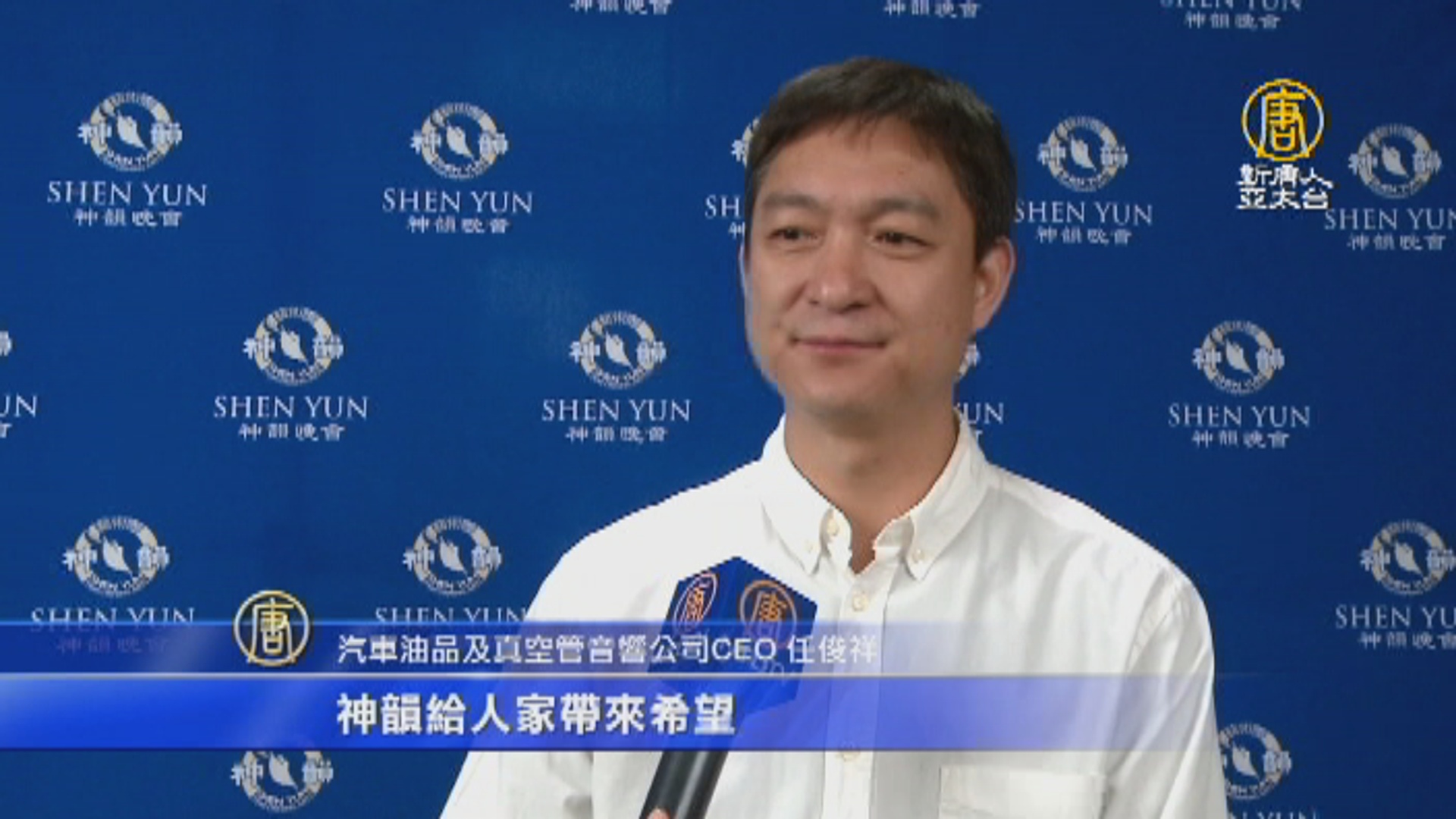 汽車油品及真空管音響公司CEO 任俊祥:「神韻給人家帶來希望,藉由中國這個,這些老子也好,莊子也好,佛教也好,道教也好,找回我們人性原本那顆赤子之心,這是一股清流,她像個架橋器,我們談的架橋,就好像她,把你帶進那個地方,讓你感動,溶入劇情,然後找到你真正的是喚醒自己那顆初心。」