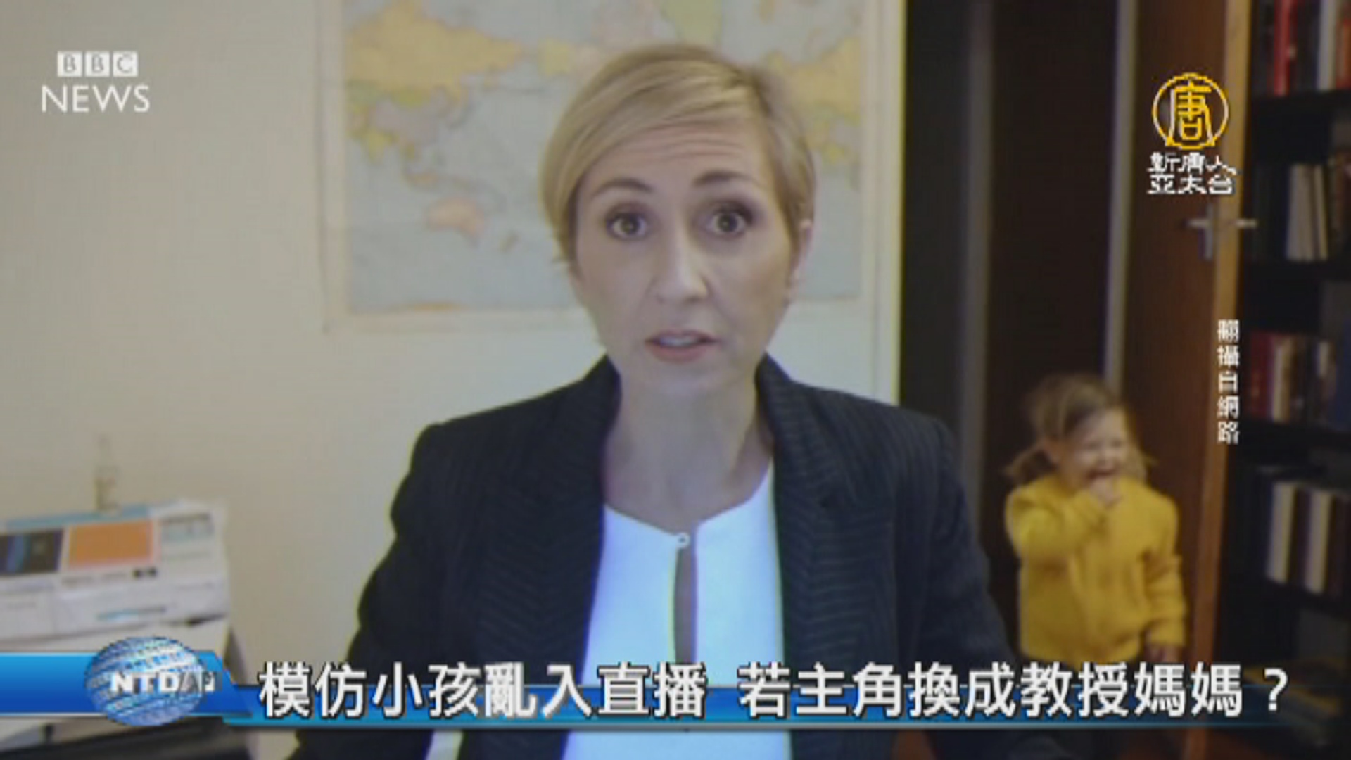 【新唐人亞太台 2017 年 03 月 19 日訊】小孩亂入BBC直播的影片在網路爆紅。現在,有民眾模仿這段直播影片,不過把影片的主角教授爸爸,換成一位教授媽媽,情況又會是怎樣呢?請看我們的報導。