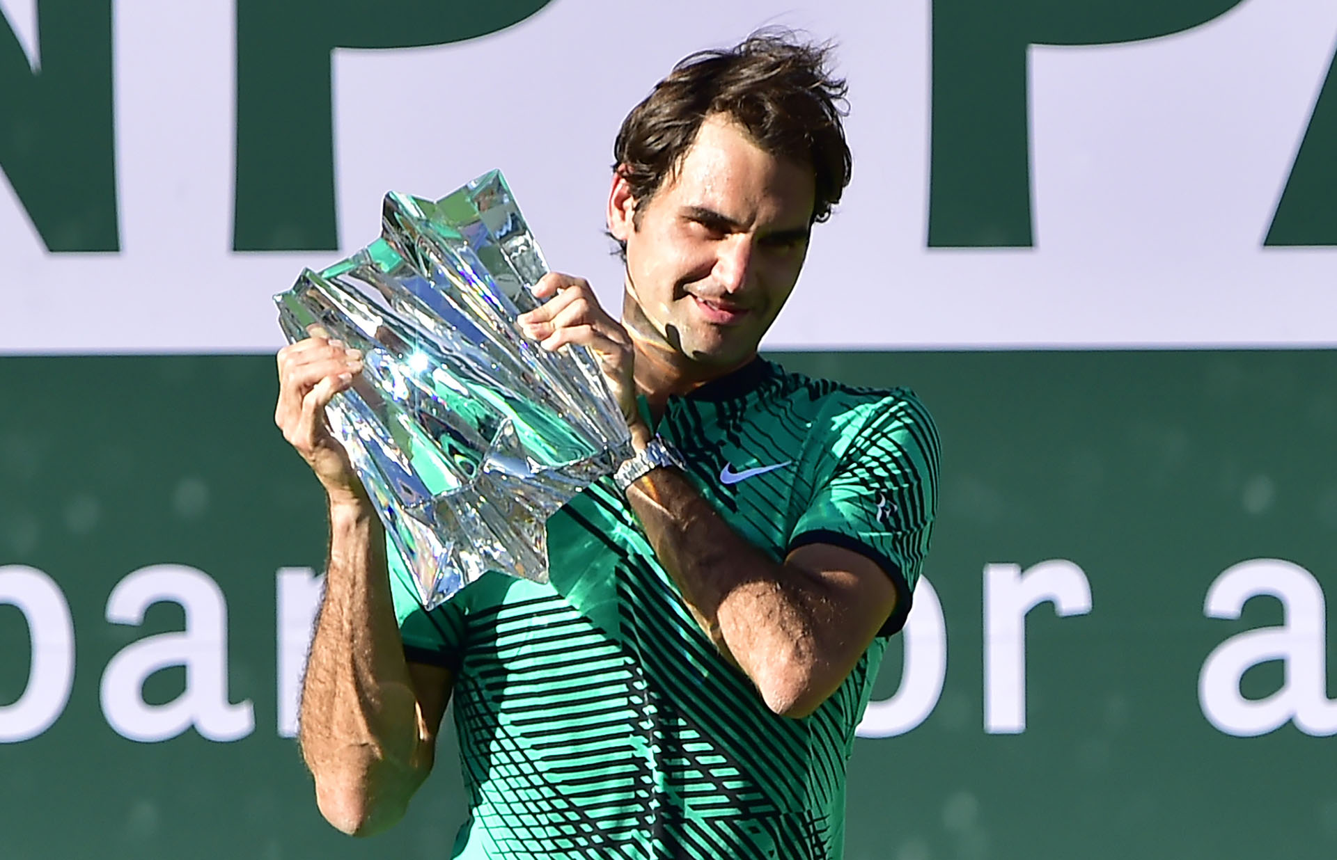 費德勒第五度奪下印地安泉賽冠軍。 (Photo by FREDERIC J. BROWN/AFP/Getty Images)