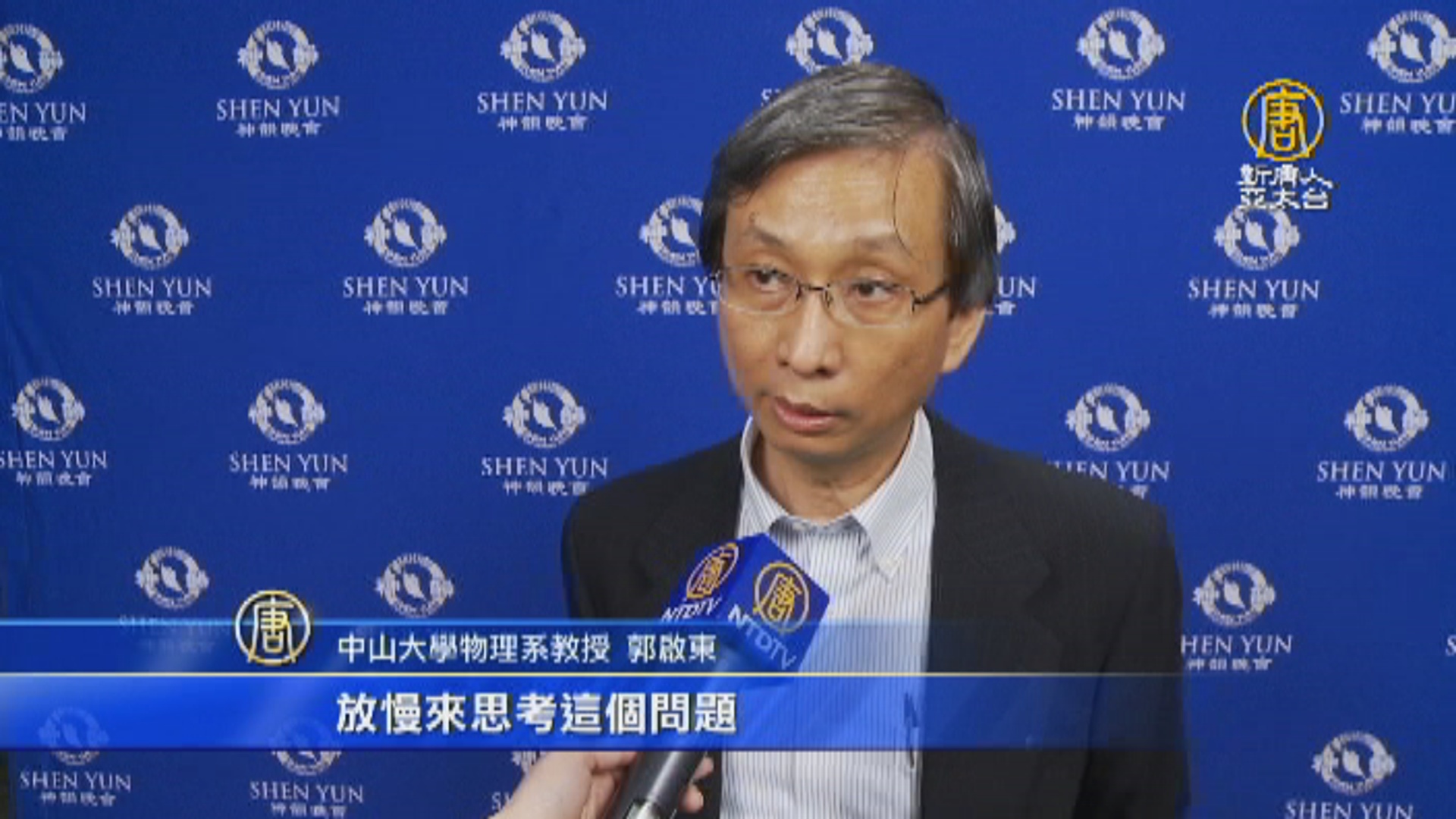 中山大學物理系教授 郭啟東:「我想社會上很多發展得太神速了,所以以致於內涵本身、道德層面的,或者是本質上的,人的這個存在的意義,等等,就是比較缺乏這方面,精神層面的。所以透過神韻這樣子的一個演出,也許可以讓人有機會把這個步調放慢,放慢來思考這個問題。」