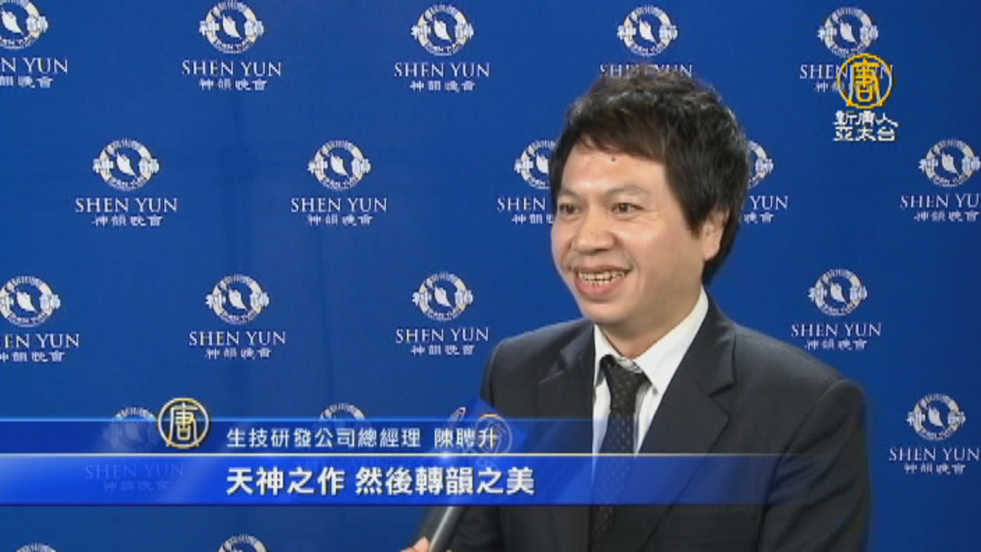 生化科技有限公司業務副總 甘嘉棠:「神韻的這樣的一個把所有的節目,搭配的那麼完整,是我們可以去觀摩跟學習的,包括每一個動作都非常的整齊劃一,讓我們很...真的是非常非常的羨慕跟讚賞。」