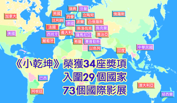 《小乾坤》至今入圍29個國家、73個國際影展,並榮獲台灣第一座休士頓影展「兒童節目金獎」(美國三大影之一)等34座國際獎項; 並分別在新唐人亞太官網、新唐人亞太 YouTube推出多國語種字幕版本,讓多國兒童可以免費觀看!