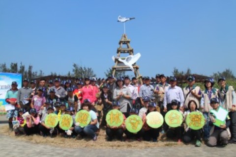 護樹達人林務局技正高義盛,解說護樹五訣竅「除草、施肥、澆水、防治、修剪」及修枝技巧後,參與人員拿起工具分組進行,在場的小朋友紛紛變身「護樹小達人」。同時利用休之後的枝條,合力完成黑面琵鷺的風向意象地標。