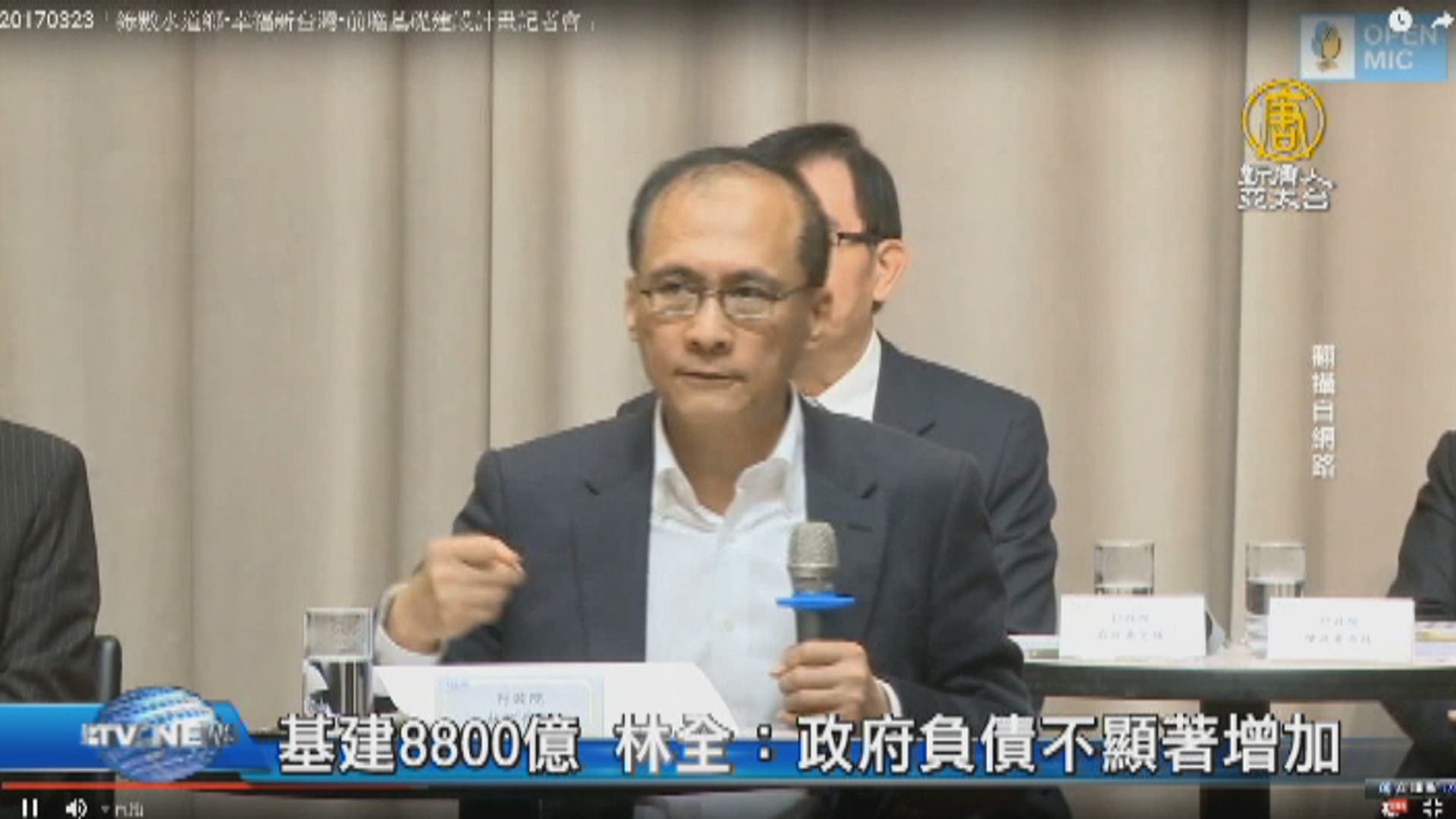 【新唐人亞太台 2017 年 03 月 23 日訊】行政院今天 通過前瞻基礎建設計畫,經費將全數舉債。行政院長林全說,八年8800億元的預算,將會守住公債法的債限要求,八年後,政府負債比率不會明顯增加。來看到稍早,林全的說法。