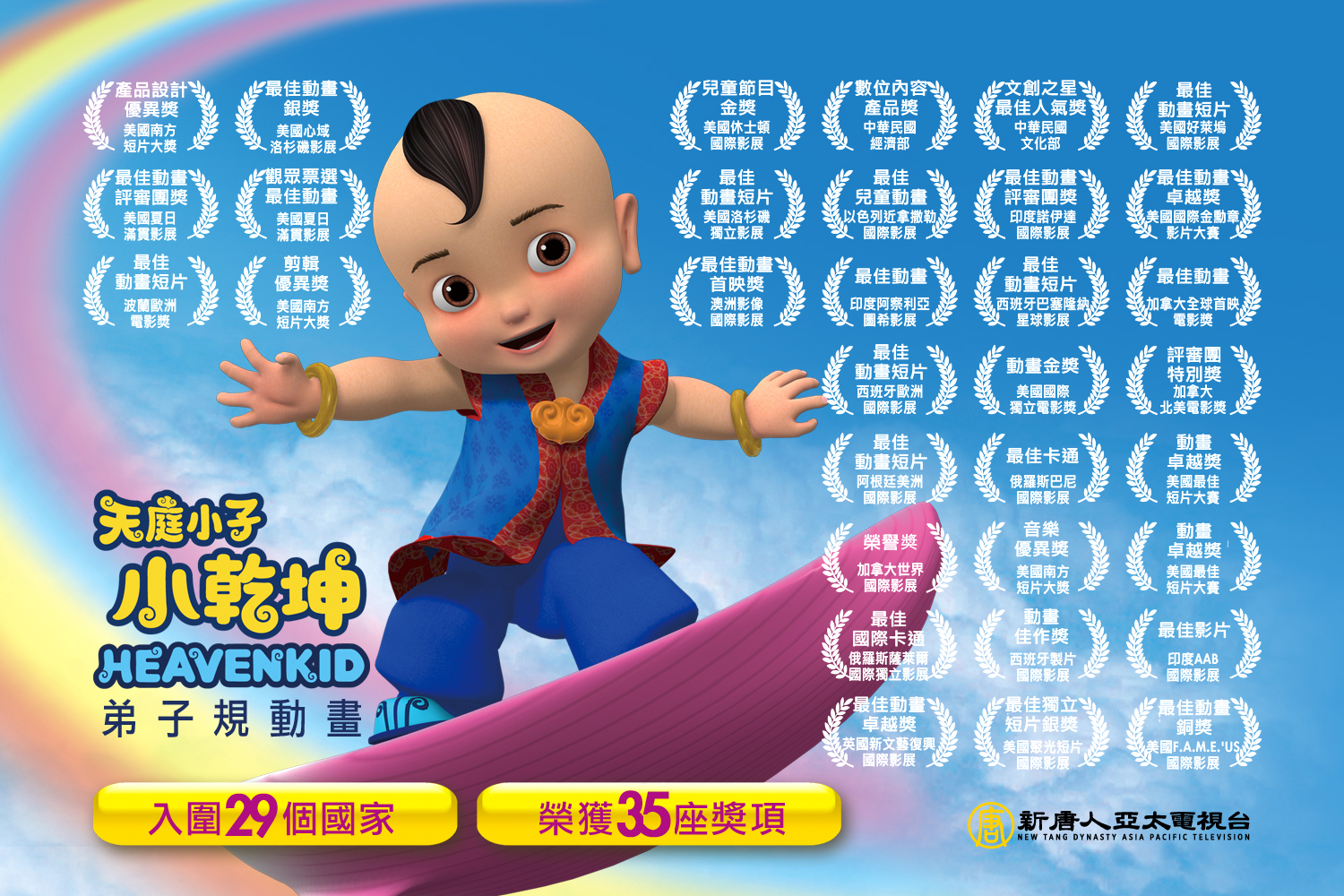 【新唐人亞太台 2017 年 03 月 24 日訊】臺灣動畫《天庭小子 小乾坤》(Heavenkid)再傳捷報!摘下美國景深國際影展春季上半年競賽「最佳動畫短片」(Depth Of Field International Film Festival)。