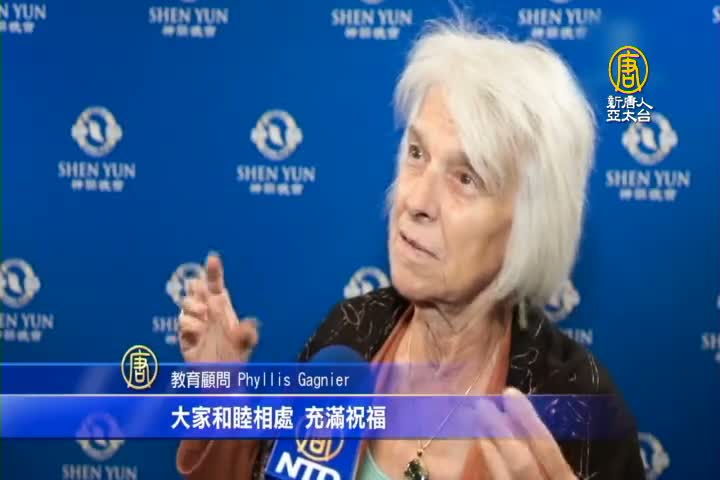 教育顧問Phyllis Gagnier:「我彷彿置身在美的搖籃裡,那裡有智慧,善和感恩。我在裡面放開體驗,而且放開再放開,讓我內心的美好激發而出,這是我從晚會中體會到的,就是讓每個人心中的美好呈現出來,大家和睦相處,充滿祝福,讓美麗和真理彰顯。」