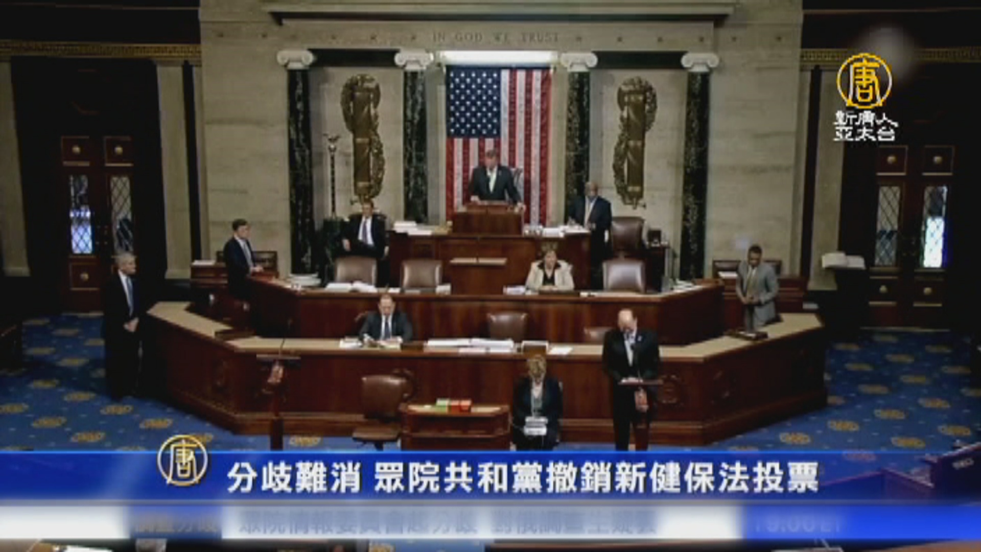 【新唐人亞太台 2017 年 03 月 25 日訊】前線大直擊,帶您鎖定,因票數不足,美國眾議院共和黨議員,在昨天全院表決的最後關頭,決定撤回對《美國健保法案》的全院投票。這對共和黨來說,是個挫折。但是美國總統川普也表示﹐將繼續努力﹐推動其它立法議程。