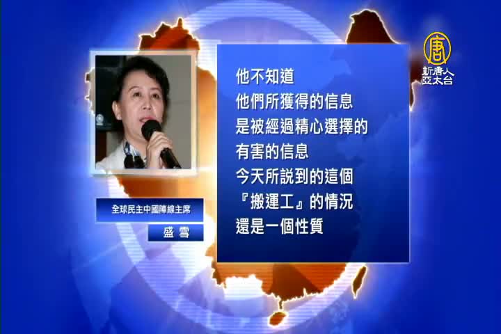 全球民主中國陣線盛雪:「他們所做的就是真心誠意的希望中國老百姓,能夠獲取更多的真相,看透中共邪惡的政權。在這一點上,這批人真的是特別值得敬重。」