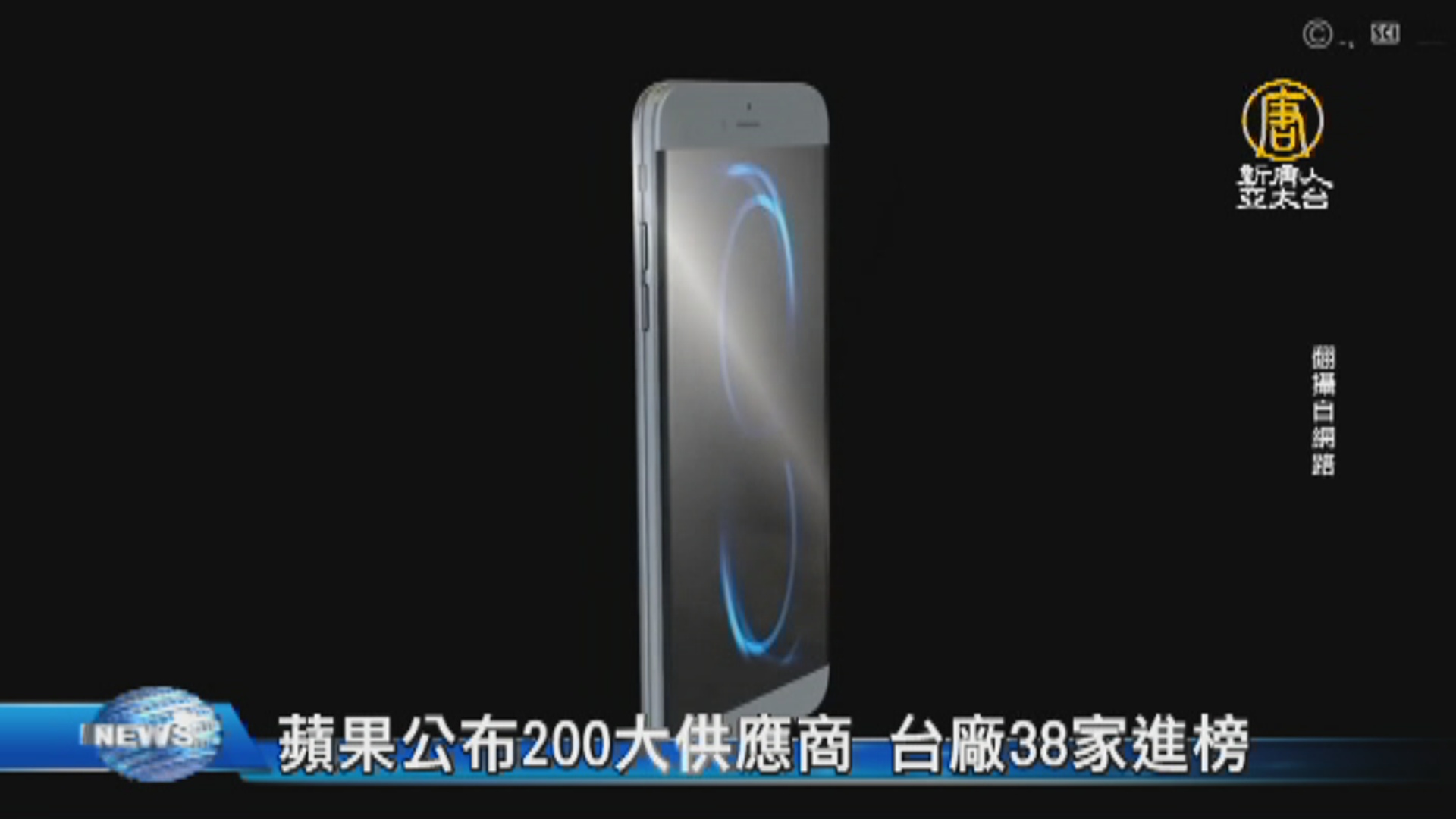 【新唐人亞太台 2017 年 03 月 28 日訊】蘋果公司公布2017年最新200大供應商名單,包括友達等3家 台廠跌出名單外,另有鴻海、台積電、大立光、日月光等38家台廠入列,其中,被動元件大廠國巨共有6個據點入列,備受矚目,而美國記憶體晶片大廠美光也進榜。這200家供應鏈廠商,約占蘋果2016年全球產品的材料、製造和裝配採購支出的比例,高達97%。