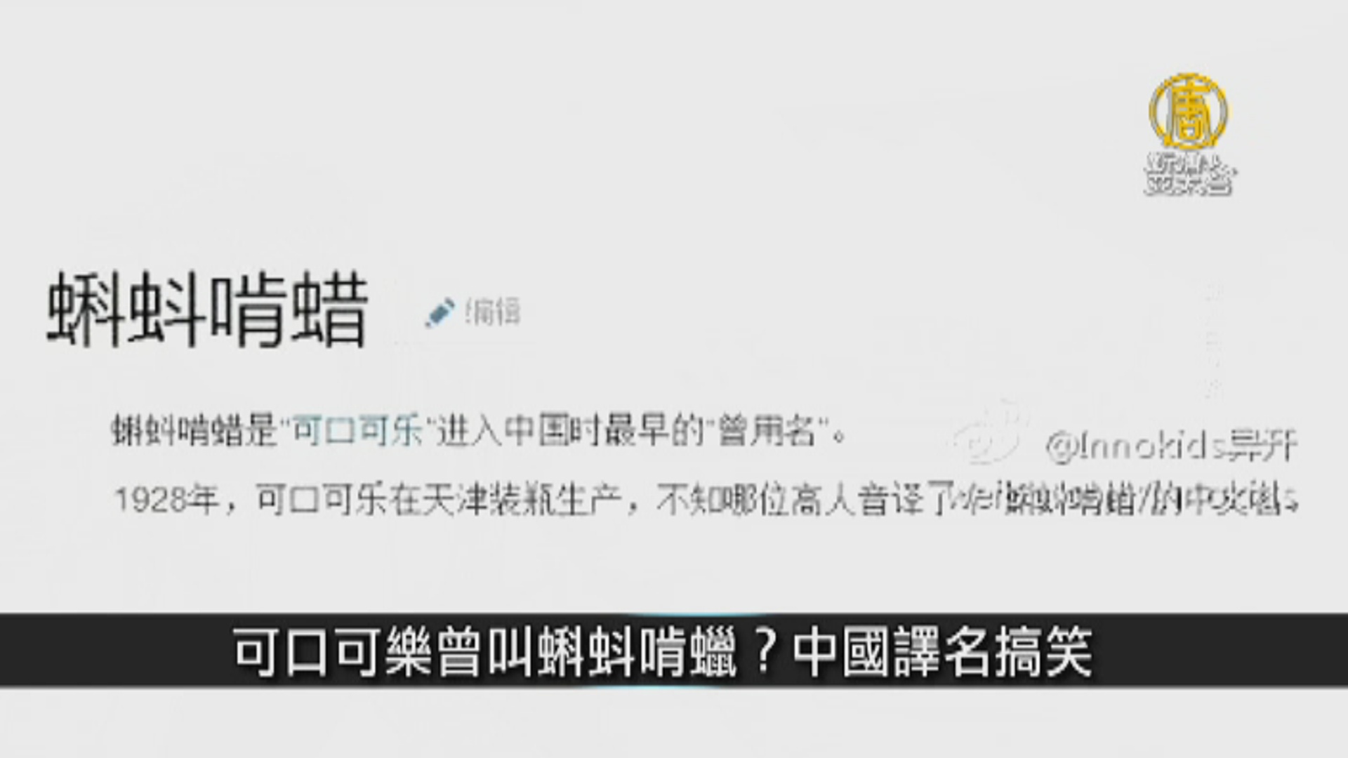 可口可樂曾叫蝌蚪啃蠟?中國譯名搞笑|中國一分鐘