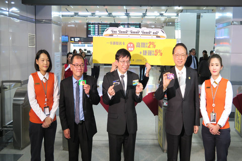 【新唐人亞太台 2017 年 03 月 29 日訊】高鐵推動多樣化電子票證,現已完成「多卡通電子票證整合平台」建置,開啟一卡通聯名卡搭乘高鐵自由座,提供搭乘自由座旅客更多元化的購票選擇以及便利的乘車服務,交通部政務次長王國材、一卡通票證公司董事長施勝耀以及高鐵公司董事長江耀宗,高鐵南港站共同主持高鐵多卡通平台及一卡通上線啟用儀式,宣示台灣高鐵正式邁入電子票證多卡通的新時代,落實智慧運輸服務。
