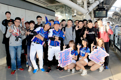 【新唐人亞太台 2017 年 03 月 29 日訊】球迷搭機捷看中華職棒,桃捷公司與Lamigo舉辦「LamiGirls快閃機捷列車」、「Lamigo球星一日站長」活動,請來Lamigo球員陳禹勲、劉時豪,在Lamigo主場的A19桃園體育園區站擔任一日站長,三位青春有活力的LamiGirls小咪、巫苡萱、ABU'U,以快閃的方式來回搭乘機捷普通車至A21環北站,沿途發送桃捷球衣徽章,帶給機捷旅客滿滿驚喜,北部球迷搭乘機場捷運、南部球迷搭高鐵至A18高鐵桃園站轉乘到棒球場看球,Lamigo球員鍾承祐、王躍霖,也於A18高鐵桃園站擔任站長,與球迷近距離互動,機捷通車新球季要到桃園球場看球最方便直接的選擇,Lamigo桃猿隊加上機場捷運,提升球迷交通方便,增加機捷運量的雙贏策略,桃捷公司竭誠歡迎大家,今年球季一起搭機捷、看棒球,為Lamigo桃猿隊加油!