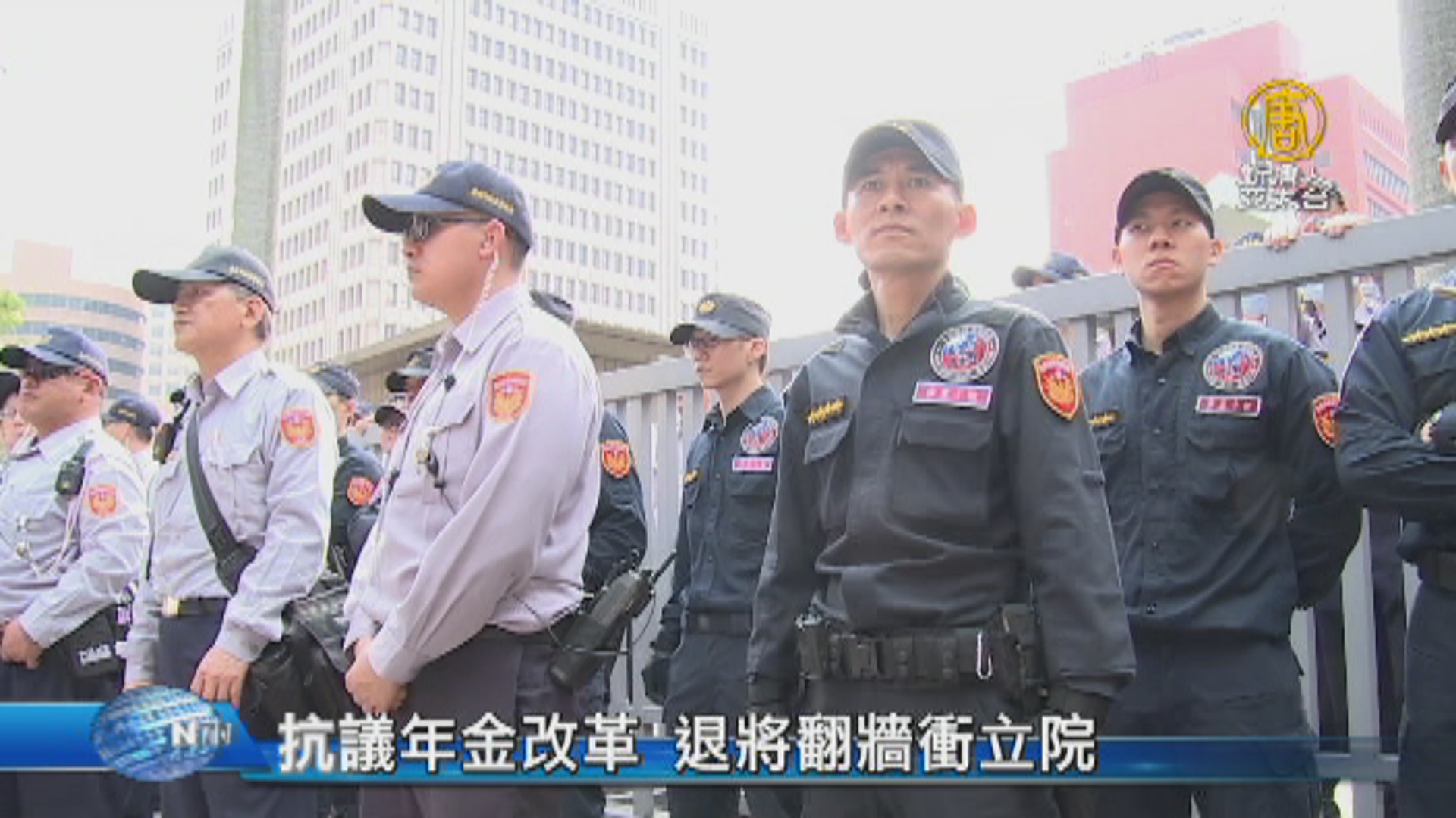 【新唐人亞太台 2017 年 03 月 29 日訊】歡迎回來,台灣警消聯盟今天發起遊行,兵分7路抗議年金改革,下午部分抗議民眾轉往立法院,和八百壯士合流,群眾一度衝破警方封鎖線,包圍立法院側門外的鎮江街,更有2人趁機翻牆,當場被警方制伏逮捕,立委黃昭順居中協調後才獲釋,行政院發言人徐國勇表示,行政院本於「保障合法、取締違法」的立場,希望遊行以和平理性表達意見,避免不理性的衝突行為。