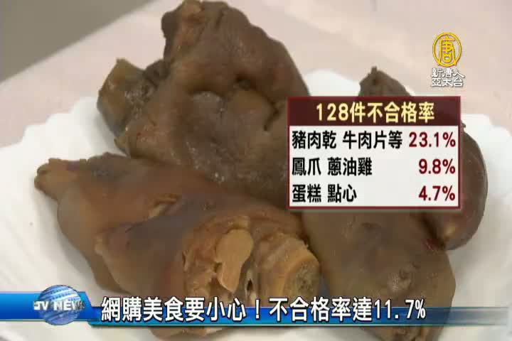 【新唐人亞太台 2017 年 03 月 29 日訊】網購食品夯,但食藥署最新抽驗網購產品,128件中有11.7%不合格,其中又以大家最愛吃的豬肉乾,滷味最常出包。因為從保存到運送,很容易出現金黃球菌汙染,還有人因此狂拉肚子就醫。