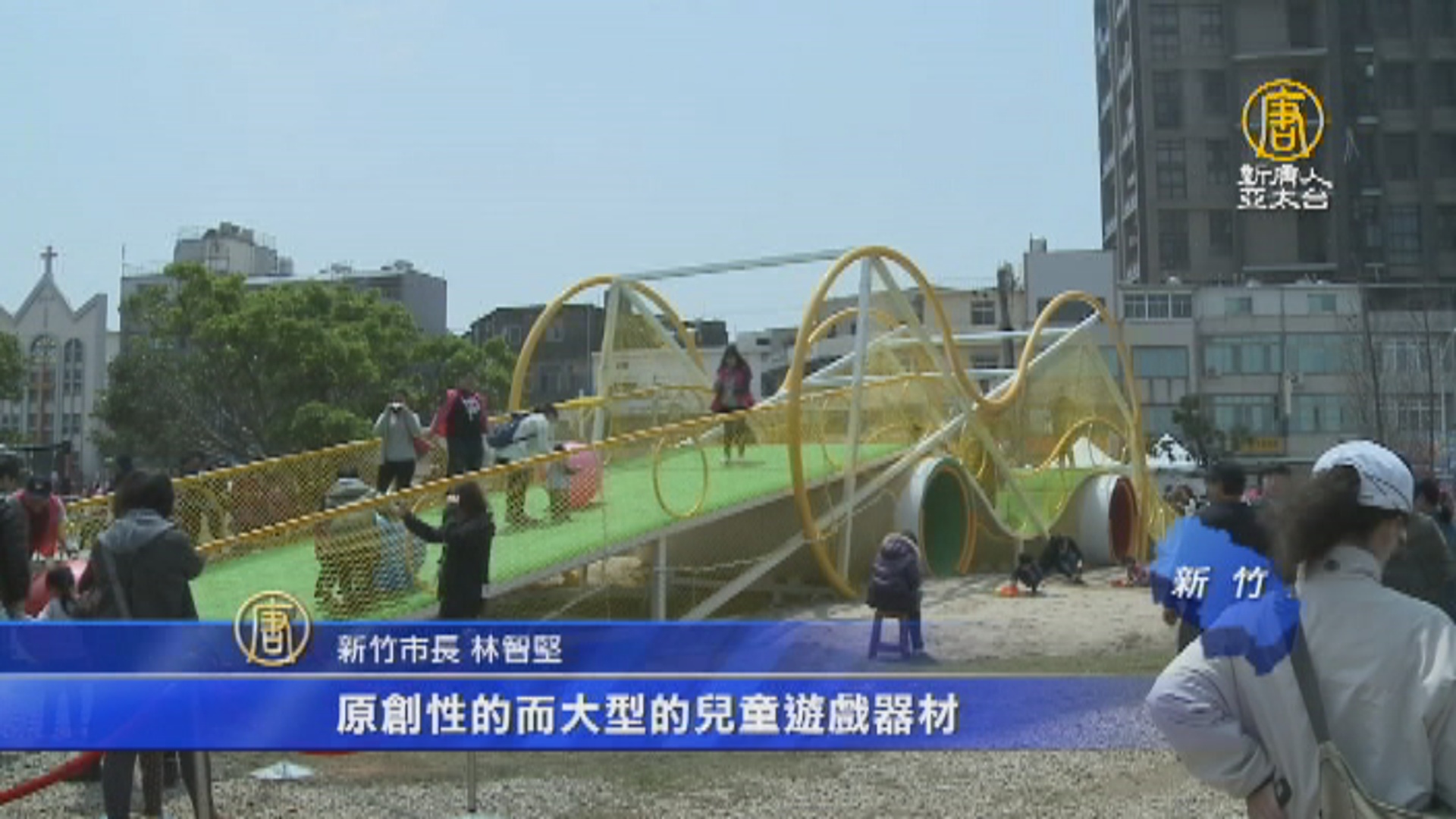 新竹市長 林智堅:「今年新竹市政府為我們全國的孩子準備了這個風的運動場,在我們兒童節要來展開,那我們這一次風的運動場的活動,是全國首創原創性而大型的兒童遊戲器材,可以讓孩子們盡情的透過這種五感的體驗,盡情的彈跳、攀爬、滑行,這是一個別出心裁的一個設計。」