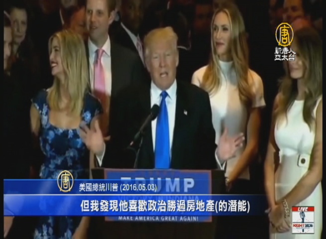 美國總統川普(2016.05.03):「Jared,娶了我的女兒,伊萬卡,我的意思是,坦白說,Jared是很成功的房地產(業界)人士,但我發現他喜歡政治勝過房地產(的潛能),而且他也的確很擅長政治。」