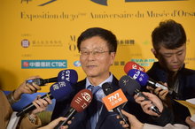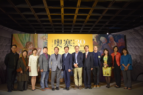 由左而右為展場顧問鄭治桂老師、中華民國畫廊協會鍾經新理事長、中國信託金融控股公司邱雅玲財務長、閣林文創股份有限公司楊培中總經理、中國時報張景為副社長、國立故宮博物院林正儀院長、奧塞美術館Jean Naudin國際策展經理、長榮航空股份有限公司柯金成發言人、奧塞美術館Jerome Legrand策展人員、國立故宮博物院李月娥主任秘書、典藏藝術家庭簡秀枝社長、國立故宮博物院李靜慧副院長出席共襄盛舉(故宮提供)
