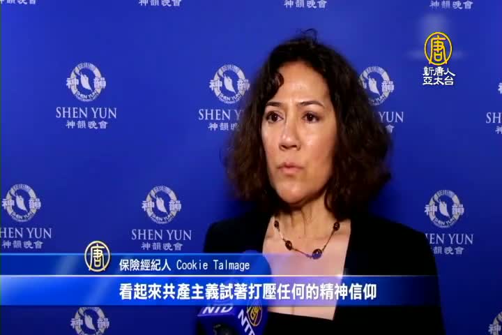 保險經紀人 Cookie Talmage:「我驚訝能學到如此豐富的文化內容,比如了解到很多都是從中華傳統舞蹈衍生而來,例如雜技。不是中國傳統舞借鑑體操,而是體操借鑑於中國舞,演員表演令人驚歎,服裝華麗,故事情節也很美好。演出揭示中國先祖的傳人們正在恢復傳統文化,而且在世界上傳播這個文化,真是好極了。」