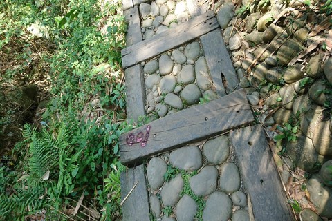 龍過脈步道坪頂段約170公尺步道損壞部分,林管處已完成噴漆註記,除派員儘速更換毀損棧板外(雲林縣府提供)
