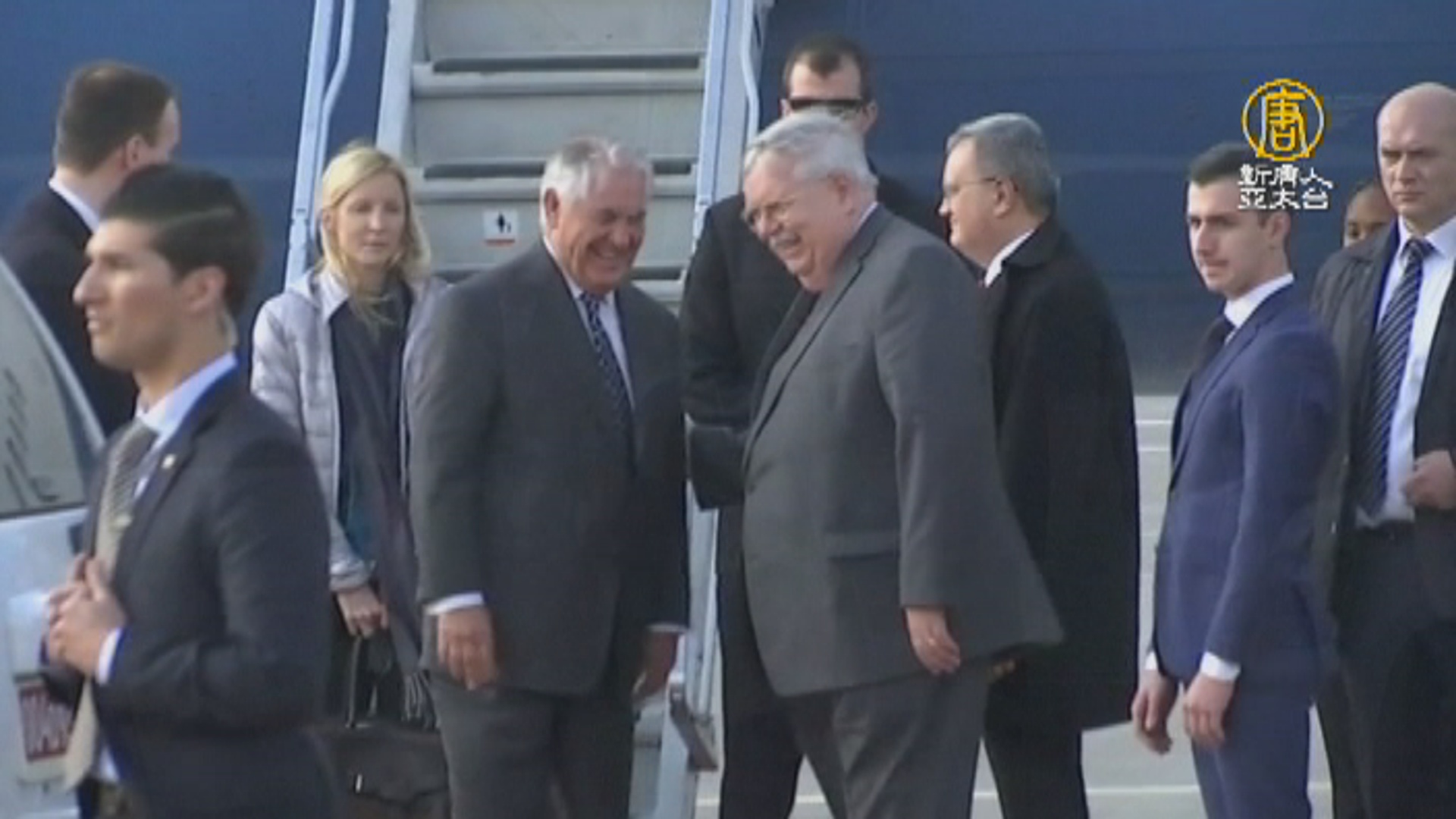 【新唐人亞太台 2017 年 04 月 12 日訊】早安新唐人,先帶您關心美國國務卿 提勒森,上任後第一次訪問俄國,稍早班機已經飛抵。明天提勒森將會與俄羅斯外交部長見面,俄羅斯稍早表示,期盼避免衝突,與美方發展 具建設性的合作關係。預計提勒森將會提出敘利亞和北韓問題,而美國總統川普,則是發表兩篇最新推文,警告北韓在「自找麻煩」,並誓言無論北京是否相助,美國都將 遏制 金正恩殘暴政權。
