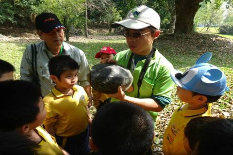 環教教師向小朋友宣導龜類保育觀念(圖/林務局嘉義林管處提供)