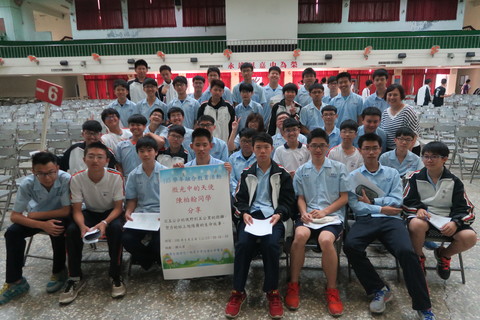 演講後,陳柏翰和班導、同學一起合影。(圖/嘉義高中提供)