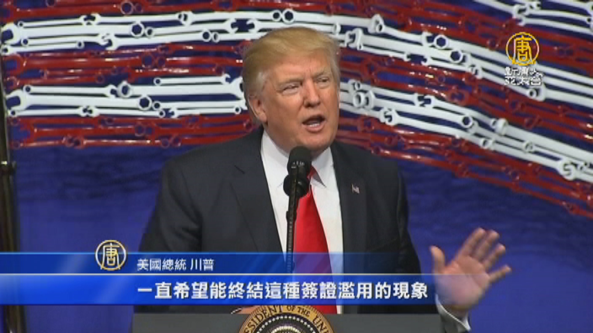 美國總統 川普:「目前我們的簽證系統,是允許各種背景的外國勞工,能夠以較低的薪水,來取代本國人的工作機會。這個情況將終止,美國勞工長期一來一直希望能終結這種簽證濫用的現象。」