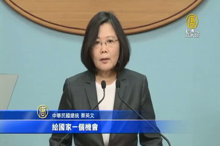中華民國總統 蔡英文:「我也要請街頭上抗議的朋友們,保持冷靜和理性。給國家一個機會,給下一代子孫一個機會。」