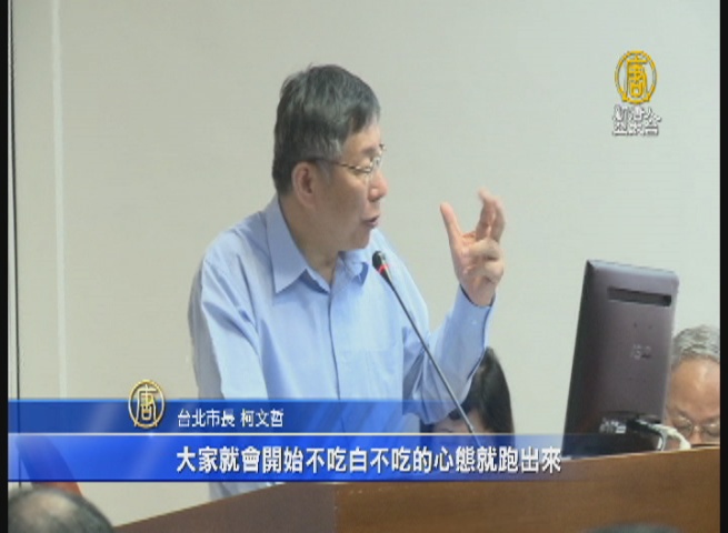 台北市長 柯文哲:「中央在補助地方的時候,我還是主張『共同付費』的制度,就是說地方要出一定的錢,那中央再補助他,因為如果全部中央出,大家就會開始不吃白不吃的心態就跑出來。」