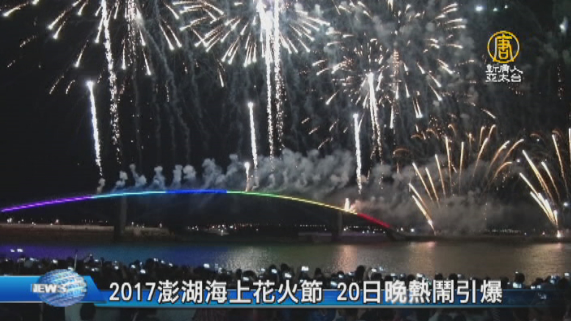 【新唐人亞太台 2017 年 04 月 21 日訊】澎湖的年度觀光盛事,2017澎湖國際海上花火節,昨晚(20日)開幕煙火秀正式登場,現場吸引3萬5千多名民眾湧入,為期2個月的花火施放,預計在1市5鄉遍地開花。