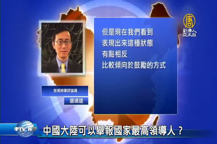 旅美時事評論員 唐靖遠:「也就是說,這次最高檢出臺的對於可以匿名舉報最高領導人,很多的媒體的甚至標題都是這麼取的,這種輿論引導的方向,我覺得至少它在客觀上,主觀上是不是有暗示矛頭有對準江澤民這個,我們至少目前沒有這個確鑿的證據去這麼說,但是,在我個人看來,這個規定的出臺,在客觀上,很可能會在中國大陸掀起又一波,對江澤民進行起訴和舉報的這麼一個高潮。」