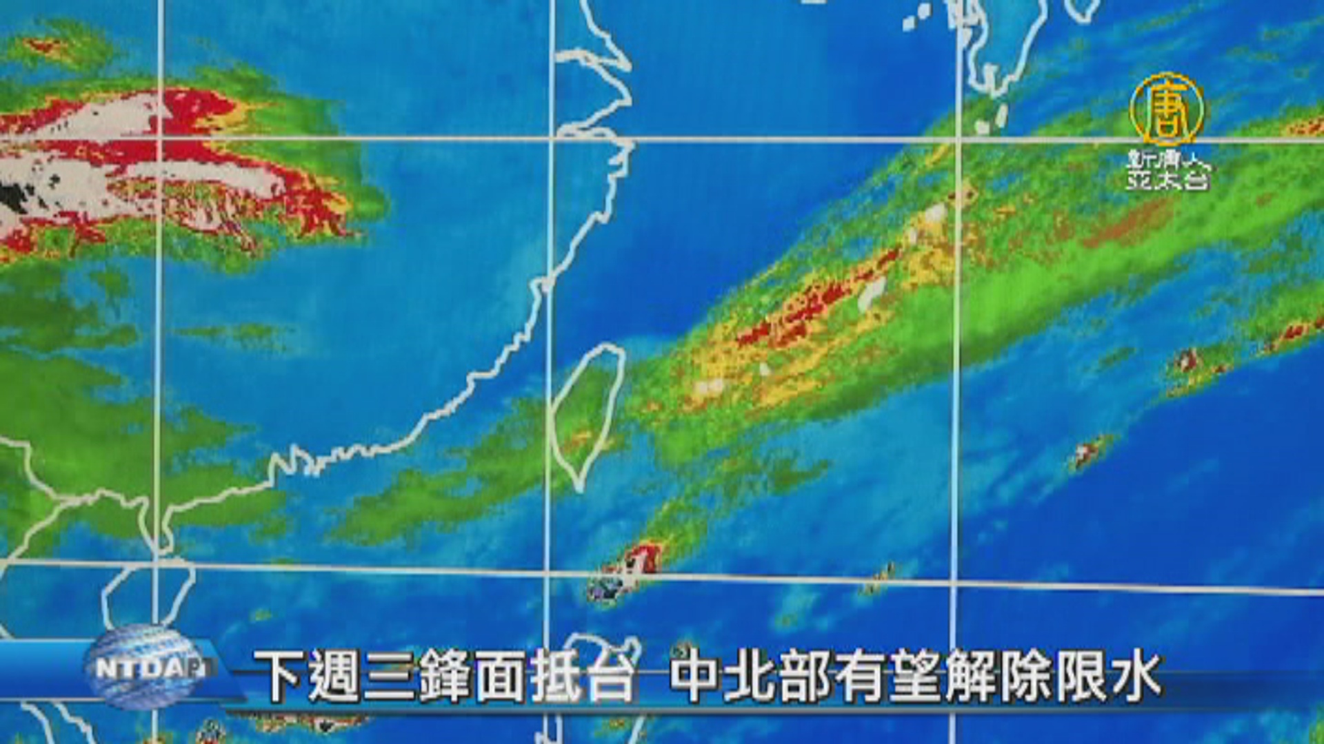 【新唐人亞太台 2017 年 04 月 23 日訊】來關心天氣。今天白天,北部天氣好轉,不過要提醒您,從傍晚開始,又有新一波華南水氣移入,各地降雨機率再提高,連日鋒面為台灣北部帶來降雨,也讓部分水庫水情舒緩解渴,水利署預計28號召開會議,討論是否解除 中北部一階限水。