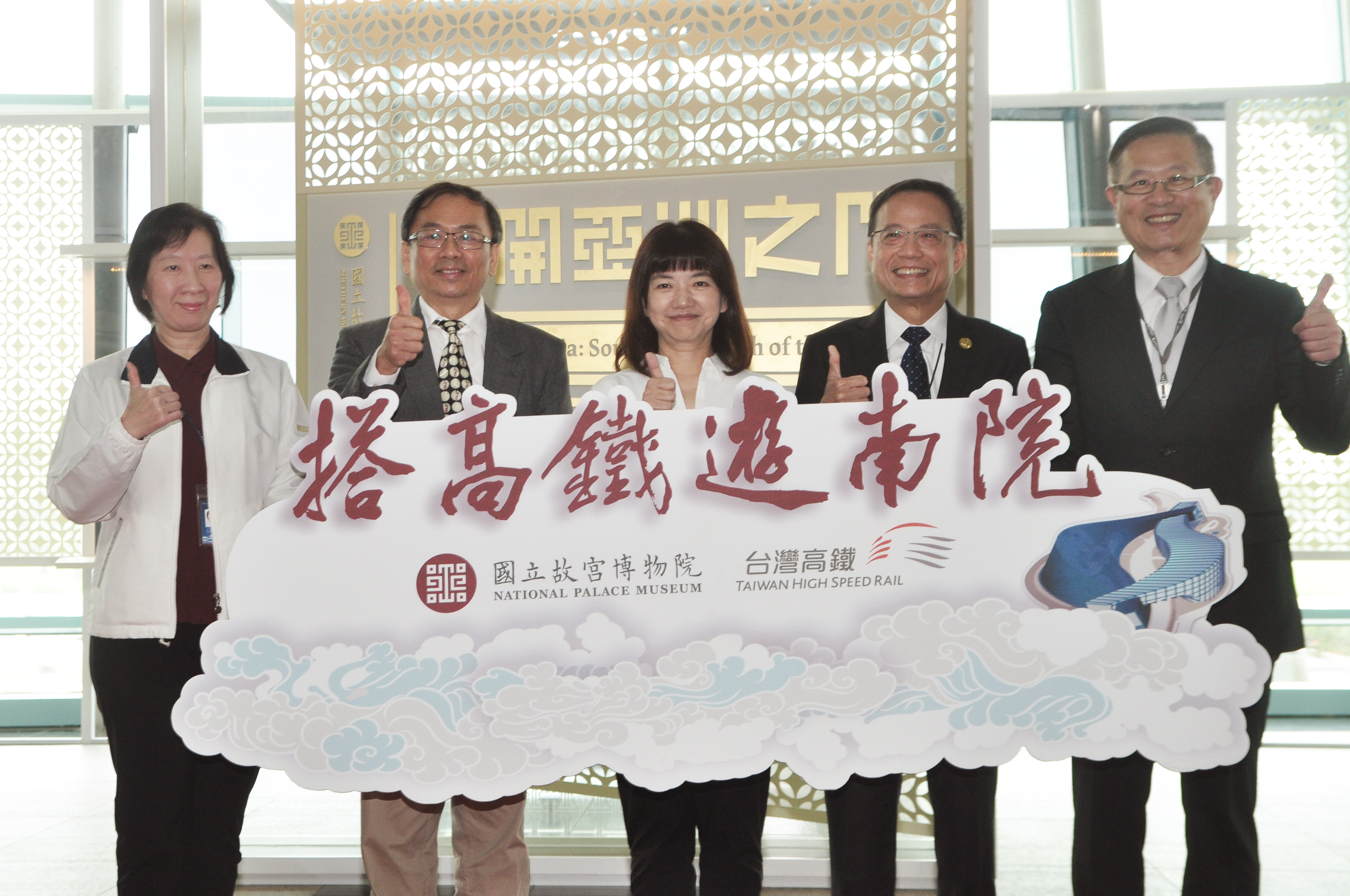 故宮南院與台灣高鐵長久合作推廣藝術美學日常生活化,除2015年故宮南院開館期間共同打造「遇見故宮南院—青花龍紋彩繪列車」外,亦聯手推出高鐵假期套票、交通接駁公車等便民措施;此次攜手「打開亞洲之門」展覽,讓典藏文物走出博物館玻璃櫃,藉由多元、輕鬆、有趣的方式走進嘉義高鐵站,化做嘉義門戶新亮點,呼應故宮「在地公共化」策略,共同行銷嘉義文化之美。