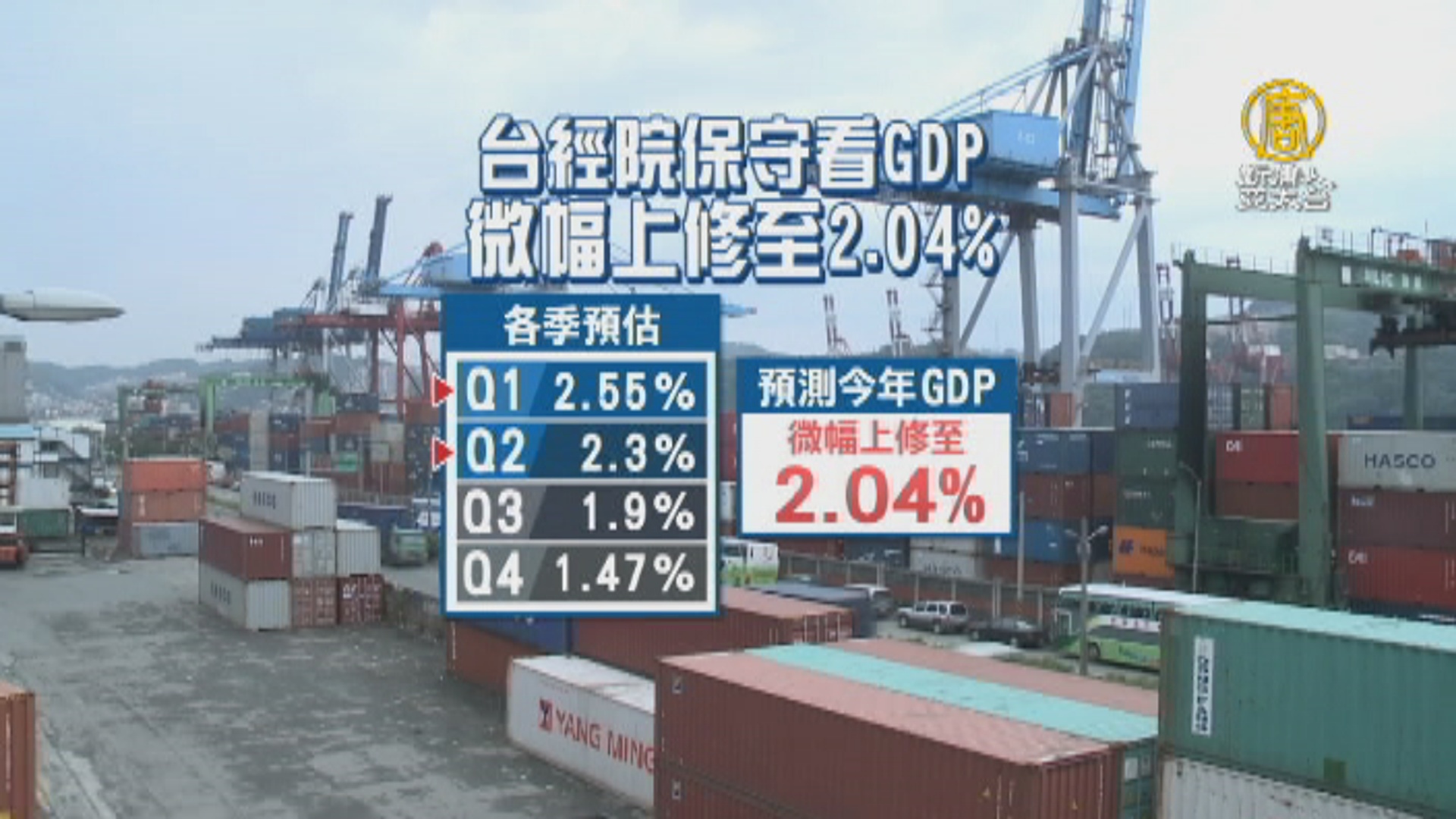 【新唐人亞太台 2017 年 04 月 25 日訊】財經新聞來看到,繼先前中經院後,台經院也公布今年景氣預測數據,預測今年GDP將落在 2.04%,主因全球景氣回溫,第 1 季進出口貿易和外銷訂單表現良好,不過,下半年民間消費不明朗,廠商普遍保守看待景氣前景,都是主要隱憂。