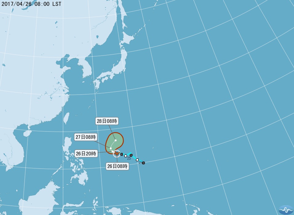 【新唐人亞太台 2017 年 04 月 26 日訊】今年第1號颱風梅花形成,中央氣象局表示,梅花颱風在今天(26日)上午8時形成,目前距離台灣東南方1800公里,正往西北西方移動,未來不會影響台灣天氣。