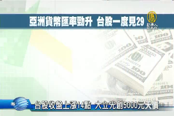 【新唐人亞太台 2017 年 04 月 26 日訊】國際股市在美股帶動下,一片看好,連帶亞洲個股也都有好表現,外資從昨天開始持續匯入,包括新台幣匯率盤中升破30元大關,股王大立光,更是一舉來到5000元價格,創下台灣證券交易史上最貴股票。