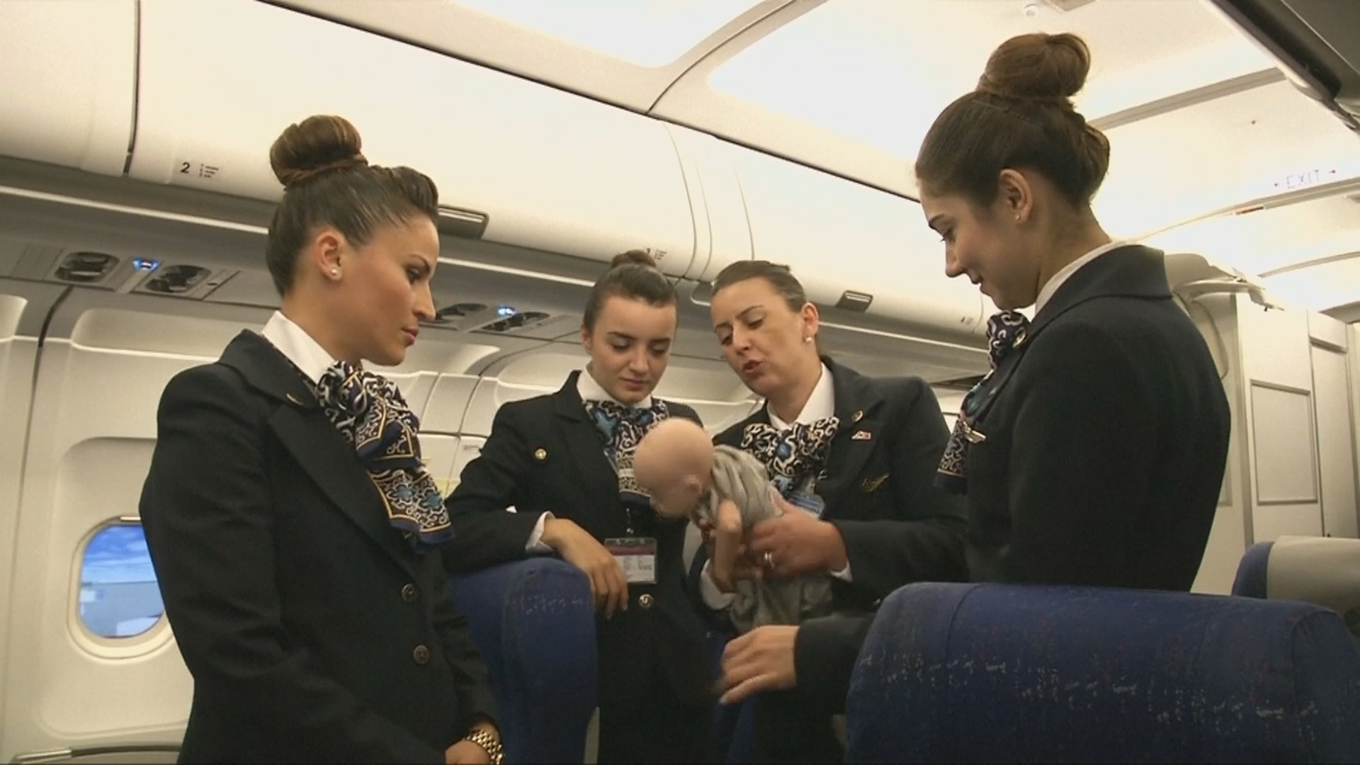 在1萬2,800公尺的高空,幾位空服員冷靜沉著的幫忙孕婦生產,孩子是個健康的女嬰,他的出生讓機上的所有人都好感動。