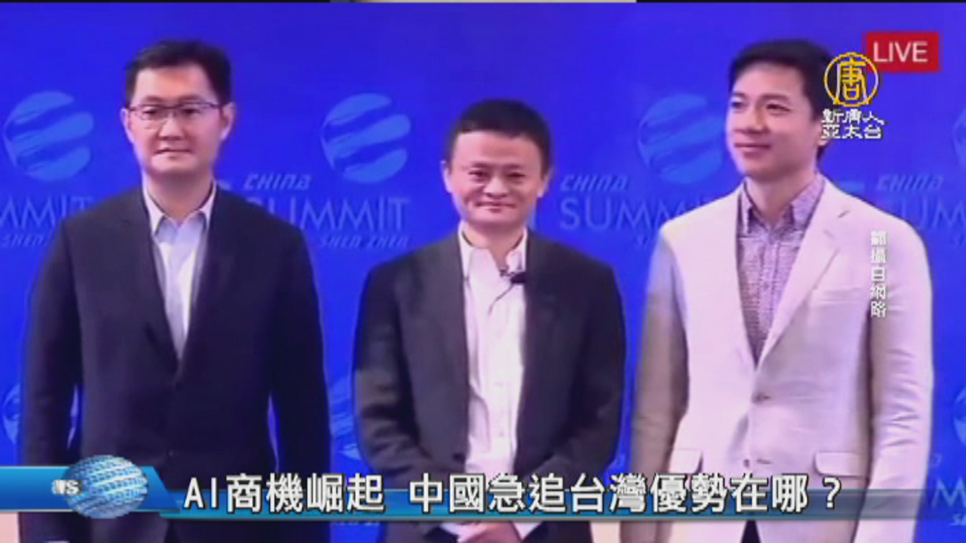 中國一年一度的「IT領袖峰會」,三大巨頭「BAT」,百度CEO李彥宏、阿里巴巴集團主席馬雲、騰訊CEO馬化騰同台亮相,就人工智慧(AI)的發展前景提出看法,中國互聯網巨頭,資料資源占有優勢,加上中國官方大力支持,發展AI產業急起直追,那麼台灣的優勢又在哪?