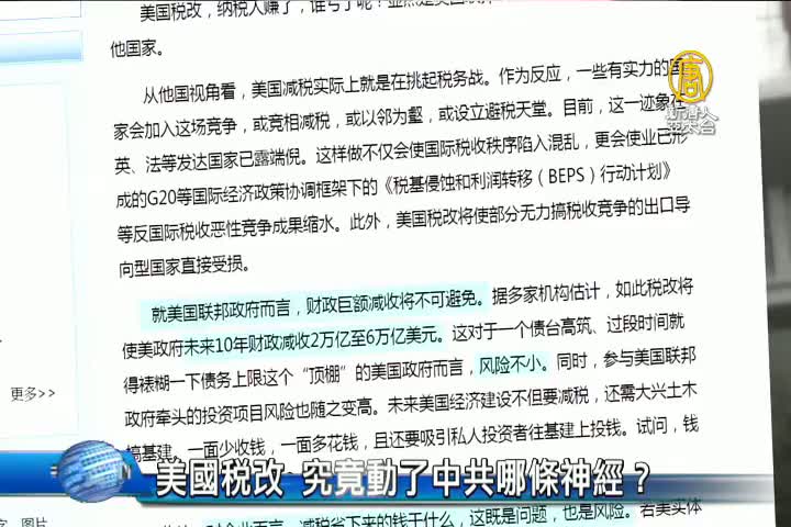 【新唐人亞太台 2017 年 05 月 01 日訊】美國政府日前推出了新稅改方案。如果這一方案能在國會通過,將對美國產生重大影響。可是,美國的稅改卻招來中共的攻擊,說美國減稅是在挑起稅務戰,可能引發金融風險等。 到底美國減稅,中共為何不高興?我們的分析報導。