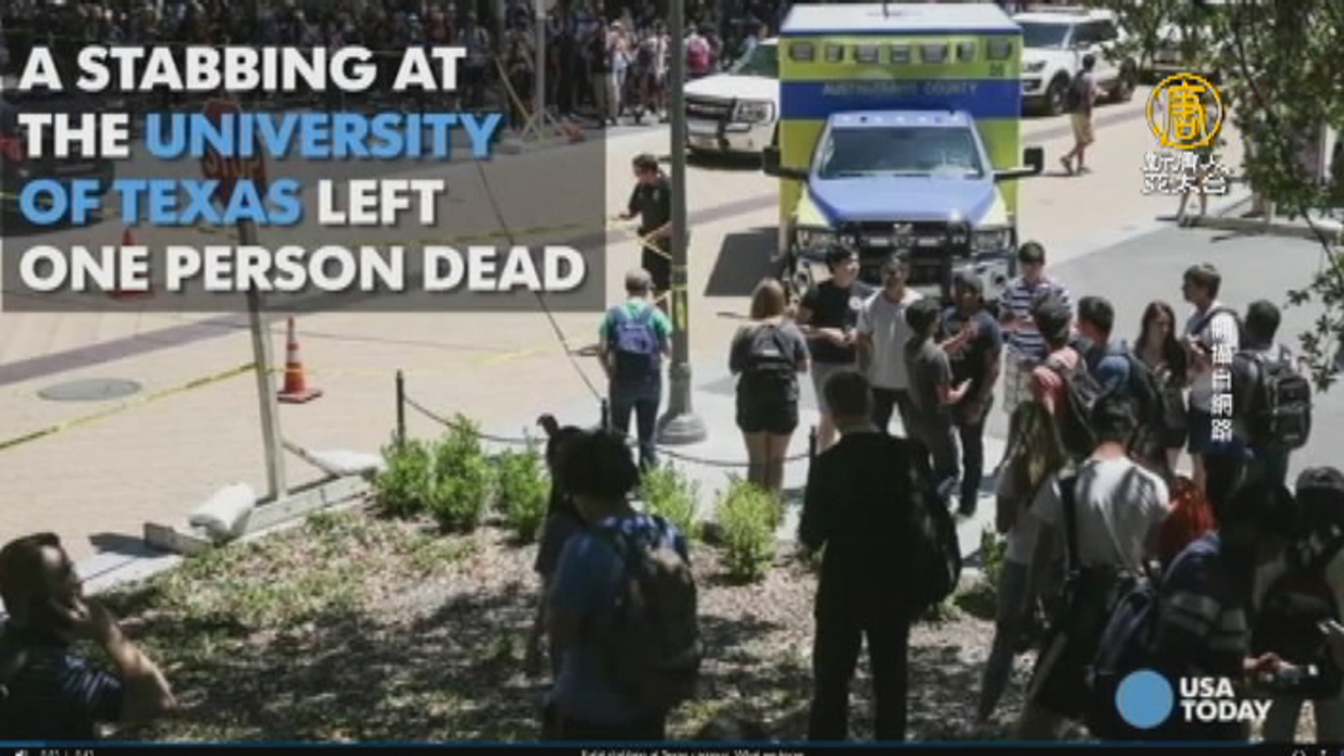 【新唐人亞太台 2017 年 05 月 02 日訊】再來看到,美國德州大學,在當地時間的1日下午,發生隨機刺人事件,一名男子持刀見人就砍,至少造成1死3傷。嫌犯在發生攻擊事件約2分鐘後被捕,正由警方偵訊中,隨後會被正式起訴。